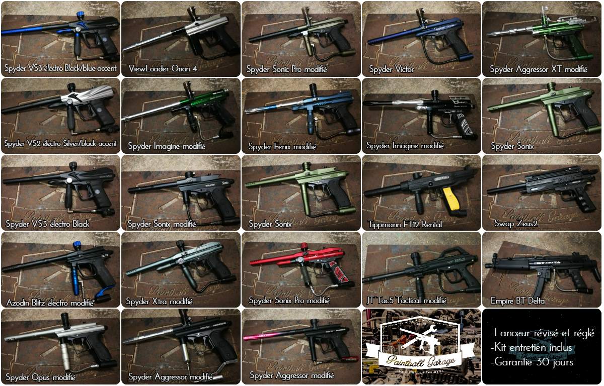 Quel est le délai d'intervention ? A dater de la réception de votre matériel, comptez environ 10 à 14 jours d'intervention. Ce délai peut varier selon la charge de travail à la période durant laquelle nous recevons votre matériel. Privilégiez les périodes basses précédant les reprises de championnat par exemple ou de la saison des big games. Combien cela coute t il ? Vous trouverez dans notre section Atelier de notre catalogue en ligne les forfaits révisions adaptés à votre matériel.Choisissez le votre, ajoutez le dans le panier, validez, choisissez le mode d'envoi pour le retour de votre matériel une fois la révision effectuée, payez. Puis il ne vous restera plus qu'à nous envoyer votre matériel à l'adresse de notre atelier, accompagné de ce formulaire rempli au préalable Cependant, vous avez un doute? contactez nous ! +33(0)659264468 info@paintballgarage.com ![]() Fort de ses 30 années d'expérience, notre technicien possède les compétences pour restaurer et remettre en ordre de fonctionnement votre matériel vintage ! Autococker, Automag, F1 Illustrator, PGP ou un Spyder de 1998, confiez le nous. Nous ferons un diagnostic et un devis pour la restauration ! ![]() ![]() ![]() ![]() ![]() ![]() ![]() ![]() ![]() ![]() ![]() ![]() ![]() ![]() ![]() Paintball Garage vous propose le plus large stock de pièces détachées, neuves et occasions. Du plus ancien lanceur au plus récent destiné à la haute compétition, vous trouverez la pièce qui vous faut: c'est par ici La pièce n'est pas listée dans nos rubriques? pas de soucis, contactez notre technicien, il vous la dénichera ! ![]() Paintball Garage, c'est aussi régulièrement des lanceurs d'occasion, révisés et réglés par nos soins avant toute mise sur le marché. Chaque modèle est révisé, reconditionné, testé avant mise en vente. Les arrivages sont permanents et nous avons des modèles pour tous les budgets et utilisations. Consultez nos offres régulièrement mises à jour: NOUVEAU ! Commandez en ligne la réépreuve de votre bouteille ICIPaintball Garage travaille en partenariat avec l'entreprise SMR industries, laboratoire indépendant habilité par l'état à réaliser les opérations de réépreuve sur les bouteilles utilisées en Paintball. Nous effectuons plusieurs envois groupés par mois. Est-ce obligatoire? Oui, l'utilisation et le transport des bouteilles de gaz sont encadrés par une législation spécifique dont le texte officiel est téléchargeable ici Toutes les bouteilles sont soumises à cette obligation d'effectuer ce controle périodique, cependant, la durée entre chaque controle varie selon le type de bouteille, sa contenance, sa matière et les données constructeurs. Bouteille air comprimé en métal -Aluminium ou Acier, SANS COMPOSITE Moins de 1 litre (par exemple 0,8litre 3000psi): contrôle obligatoire tous les 10 ans à partir de la date de fabrication gravée sur la bouteille. Renouvelable sans limite de temps Plus de 1 litre: contrôle obligatoire tous les 2 ans à partir de la date de fabrication gravée sur la bouteille. Renouvelable sans limite de temps Bouteille air comprimé en composite - carbone, kevlar exemple: système air carbon 1,1 litre, 1,5 litre... Le contrôle doit se faire selon les instructions constructeur obligatoires inscrites sur la bouteille faisant apparaitre