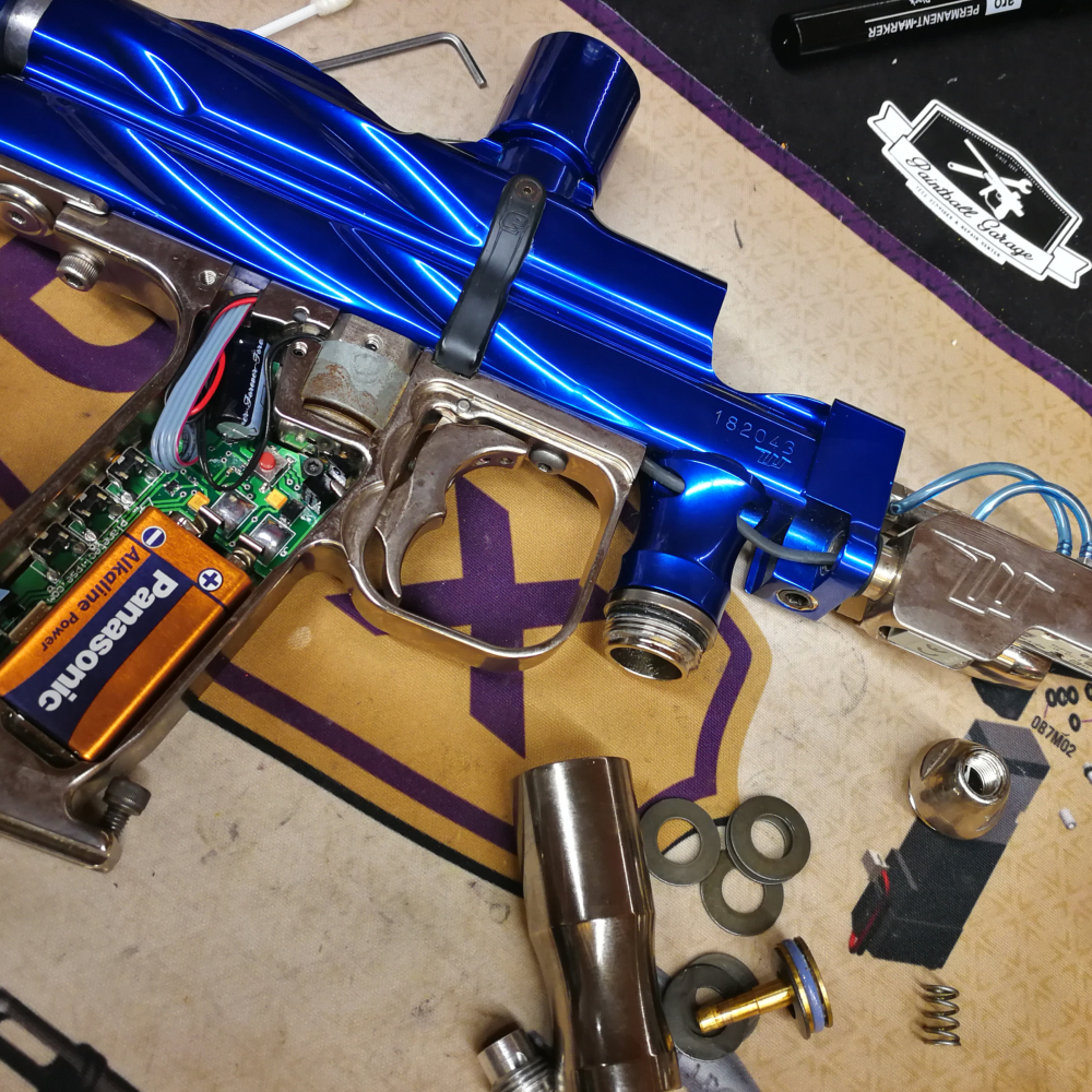 Une fuite, un mauvais fonctionnement, nous pouvons réparer cela. Nous tachons chez Paintball Garage d'avoir un large stock de pièces détachées afin d'intervenir immédiatement sur un maximum de lanceurs ainsi que les accessoires. Réparer une panne nécessite un mininum de compétence et d'outillage adéquate. Confiez nous la réparation de votre matériel défectueux ! Le tarif d'intervention se fera sur devis selon le type de réparation. Notre tarif horaire standard pour la main d'oeuvre est de 59€ TTC de l'heure ![]() ![]() ![]() ![]() ![]() ![]() ![]() ![]() ![]() Le Paintball est une activité sportive et aussi mécanique de par l'utilisation des lanceurs entre autres matériels de jeu ! Par conséquent, comme une voiture, il est indispensable de garder votre matériel entretenu correctement! Paintball Garage vous propose ses forfaits révision complète, adaptés aux divers types de lanceurs. Chez Paintball Garage, nous ne négligeons aucun matériel quelque soit son état ou sa catégorie. Que vous soyez joueurs occasionnel, loisir woodball ou compétiteur acharné, votre lanceur si il n'est pas entretenu correctement, présentera des soucis de tir, des irrégularités au chrony, une surconsommation d'air... et cela concerne aussi bien les systèmes air ! Quand doit on faire une révision? Un entretien complet, sous réserve des conditions de jeu et de la fréquence, devrait être fait au moins 1 fois tous les ans ou toutes les 20 caisses de billes tirées. En quoi consiste l'entretien complet chez Paintball Garage? Diverses étapes sont réalisées par notre technicien: